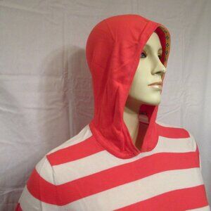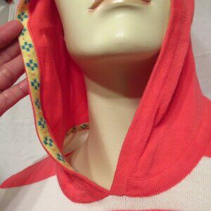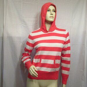 Vintage Y2K 90s 2000s IZOD women's striped hoodie sweatshirt hooded pullover sweater. Athleisure Travel. Coral orange and white horizontal stripes pattern, color block style. Hood with drawstring. Kangaroo or pouch front pocket. Ribbed cuffs and hem. Soft knit. Made in AUSTRALIA. Excellent condition, preowned. Material is 100% Cotton. Care instruction: Machine wash cold.