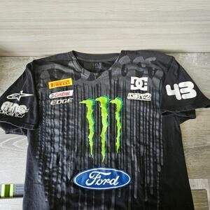Vintage Y2K 90s Ken Block DC Shoes Graphic Shirt Size L Monster Energy Ford Logo