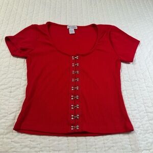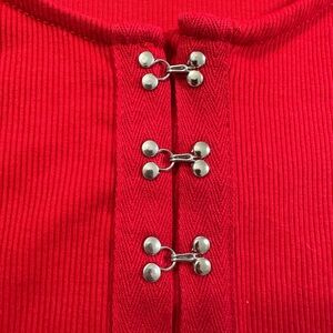 Elevate your style with this vibrant red crop top featuring chic button-front details. Perfect for any casual occasion.