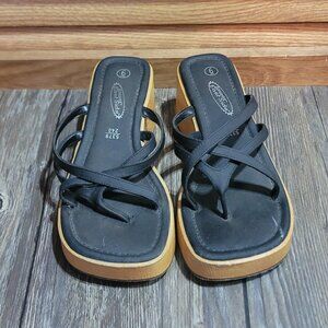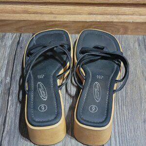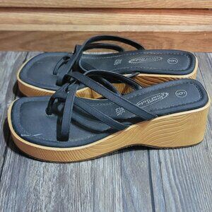 Vintage Y2K 90s Lower East Side Faux Wood Chunky Platform Strappy Sandals Sz 6