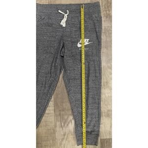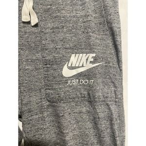 Indulge in the allure of vintage Nike with these joggers. Don't miss out on the opportunity to own a piece of sportswear history. Add these stylish Heather gray joggers, featuring the iconic "Nike" logo and the recognizable swoosh, to your collection today.