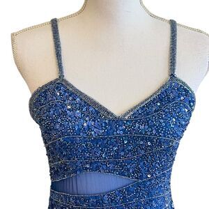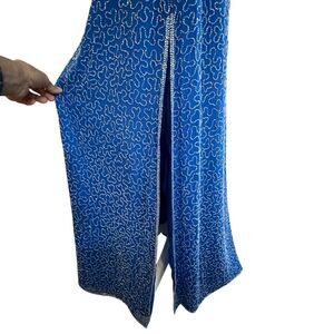 Vintage Y2K 90s Scala Blue Silk Beaded Sequin Dress Prom HOCO Formal Wedding Gala