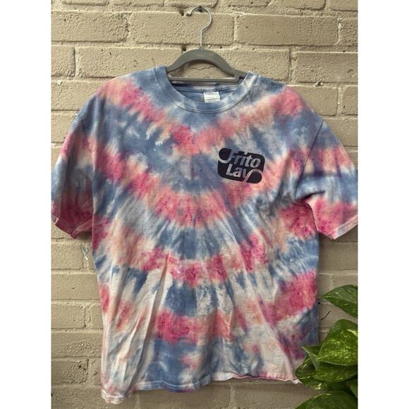 Vintage Y2K 90s Tie-dyed Graphic T-shirt L Pink Blue 100% Cotton