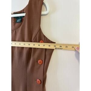 Vintage Y2K 90s Women Sleeveless Dark Academia Brown Button Midi Sheath Dress 10