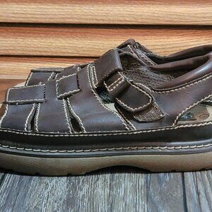 Vintage Y2K 90s Women's Size 8 Chunky Platform Thick Stitching Sandals Brown