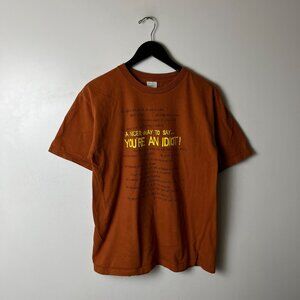 Vintage Y2K A Nicer Way to Say Idiot Humor T Shirt Adult Orange Large L Graphic Tee 100% Cotton Short Sleeve Solid Logo Print