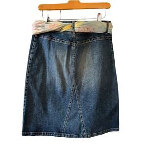 Retro Vintage Denim Skirt Jean skirt Scarf Belt 90s Patchwork Allen Schwartz