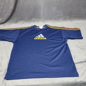 Vintage Y2K ADIDAS Three Stripe Logo T-Shirt Oversized Fit Navy Tee Size Large