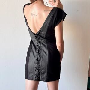 Vintage Y2K ALICE + OLIVIA Black Leather Corset-Back Mini Dress