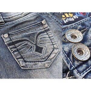 Vintage Y2K ANGELS JEANS McBling 7" Ultra Low Rise Crop Cuff Icy Wash Jeans Size 7