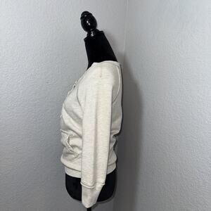 The Vintage Y2K Abercrombie And Fitch Juniors Size Large Fleece Sweatshirt is a classic and retro-style piece perfect for casual occasions and travel. Made from a blend of polyester and cotton, this off-white sweatshirt features a scoop neck, 3/4 sleeves, and a button closure with a kangaroo pocket for added style. Machine washable and easy to care for, this slim-fit sweatshirt is lightweight and stretchy, making it comfortable for the winter, fall, and spring seasons. Perfect for women who appreciate a 90s-inspired look, this vintage piece from Abercrombie And Fitch is a timeless addition to any wardrobe.
