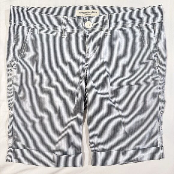 Vintage Y2K Abercrombie & Fitch Blue Wht Stripe Bermuda Shorts Womens 2 Nautical