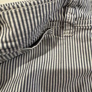The Vintage Y2K Abercrombie & Fitch Blue White Stripe Bermuda Shorts for women in size 2 are a stylish and lightweight addition to your summer wardrobe. These Bermuda shorts feature an ultra-low rise and a 9-inch inseam, with a flat front and button closure. Made from a comfortable cotton blend with a touch of spandex for stretch, these shorts are perfect for casual outings and parties. The nautical-themed striped pattern adds a fun and trendy touch, while the cuffed hem and pockets make them practical for everyday wear. Perfect for the beach, walking, or just lounging in style.