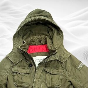 Vintage Y2K Abercrombie & Fitch Hooded Military Jacket Small Utility Quilted
