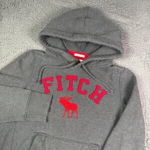 Vintage Y2K Abercrombie & Fitch Hoodie Mens M Gray Spellout Logo Muscle Fit