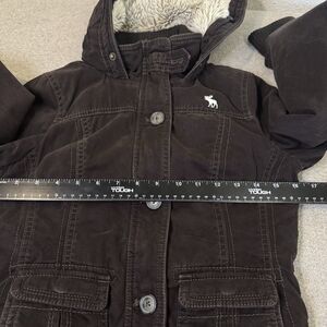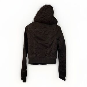 Vintage Y2K Abercrombie Fitch Jacket Brown Bomber Sherpa Hooded Cropped Moose M