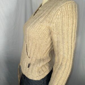 Vintage Y2K Abercrombie & Fitch Lambswool Knit Hoodie Sweater | Beige Ribbed Pul