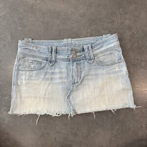 Vintage Y2K Abercrombie & Fitch Mini Sequin Mcbling Denim Frayed Skirt SZ 2