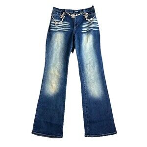 Vintage Y2K Acid Wash Denim Bootcut Flare Jeans Surf Sea Shell Belt USA 28’