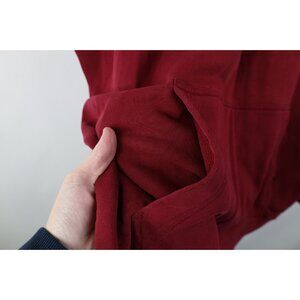 Holes/thread bare hood, cuffs, pocket. Stains/dark spots front, back, arms/cuffs. Hood, cuffs discolored. Pilling, fabric pulls. String distressed. Color faded