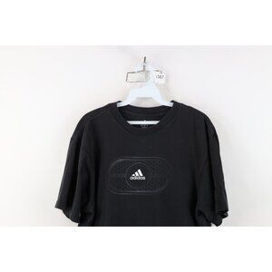 Vintage Y2K Adidas Mens Large Faded Spell Out Center Logo Short Sleeve T-Shirt