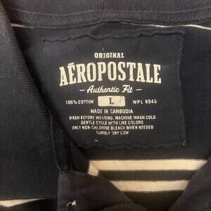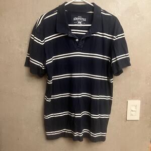 Vintage Y2K Aeropostale Navy Striped Polo Shirt Large Men's Cotton Knit Tee