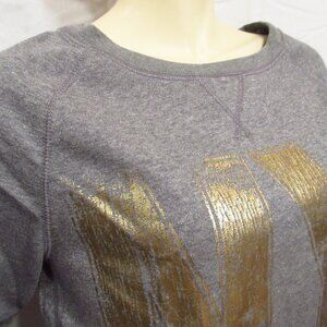 Vintage Y2K 2000s Aeropostale womens sparkly glitter gray pullover sweatshirt. Raglan long sleeve. Heather gray base with gold metallic NY oversized graphic print. Crewneck, scoop neck neckline. Slightly high-low (hi-lo) hem. Excellent condition, preowned. Material is 59% Cotton 20% 12% Nylon Polyester 9% Metallic. Made in Indonesia. Care instruction: Machine wash cold.