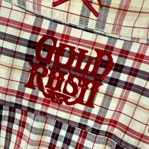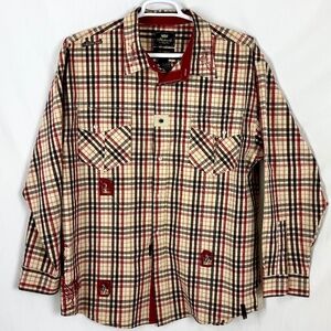 Vintage Y2K Akademiks Shirt 3XL Red Plaid Button Up Embroidered Gold Rush EUC