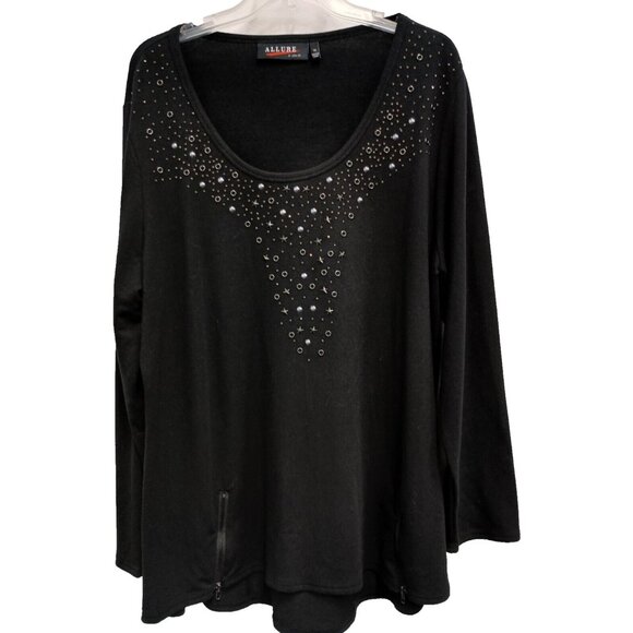 Vintage Y2K Allure Womens Tunic Top Size 1X Black Embellished Long sleeve Grunge
