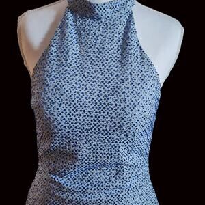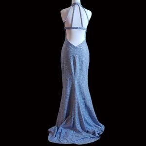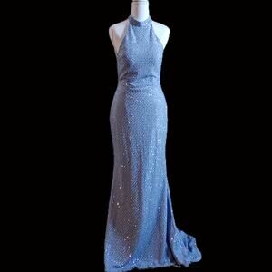Vintage Y2K Alyce Paris Ice Blue Sequin Halter Gown Open Back