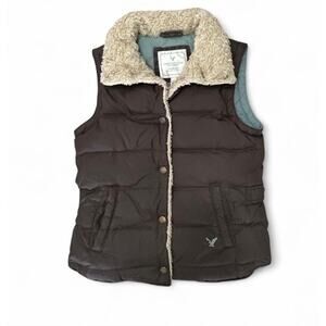 Vintage Y2K American Eagle Women’s Brown Down Quilted Puffer Vest Sherpa XS