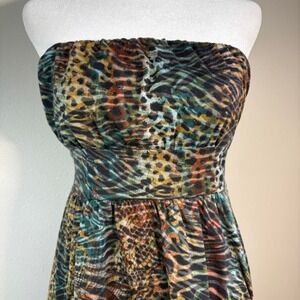 Vintage Y2K American Rag Women L Tube Mini Dress Animal Leopard Print Tie Back