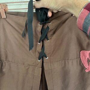 Adorable hand made Y2K brown pencil skirt in a midi length featuring a corset tie closure at the back. Best of all is the pink felt galloping horse appliqué on the right hip. You could get creative with how you wear and style this - even wear as a strapless mini dress! Pair with cowboy boots for a Nashville weekend or anytime you are looking for a western vibe.