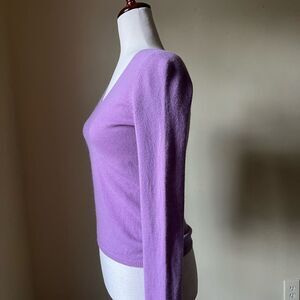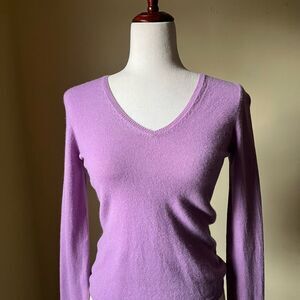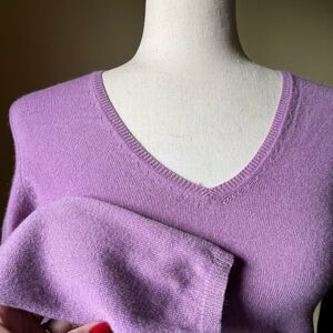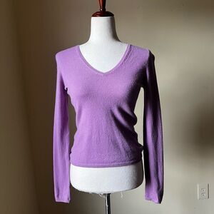 ann taylor cashmere sweater, vintage y2k knitwear, lavender purple top, hong kong cashmere, minimalist fall outfit, two ply cashmere pullover, soft v neck sweater, luxury vintage clothing, 90s 2000s fashion, pastel knit top, cottagecore feminine style, timeless capsule wardrobe, soft girl aesthetic, winter layering piece, preppy retro style, xs fitted cashmere knit
