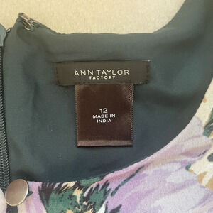 Vintage Y2K Ann Taylor Dress Women 12 Green Beige Purple Large Flowers Babydoll