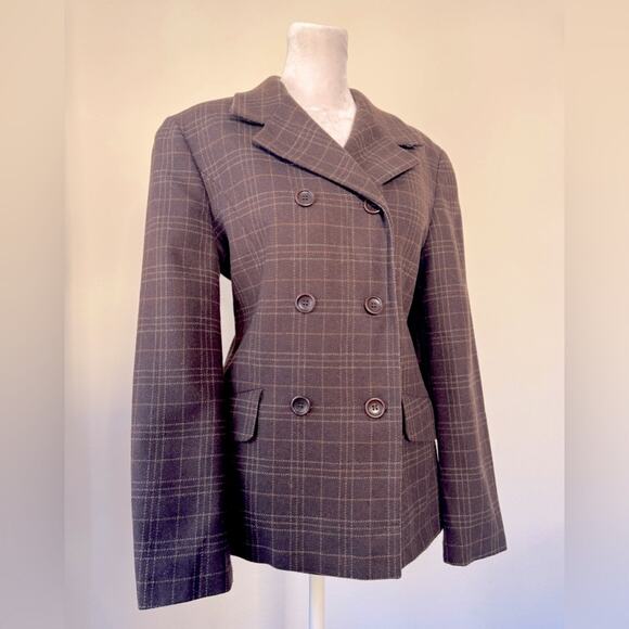 Vintage Y2K Ann Taylor Loft Brown Plaid Wool Double Breasted Blazer