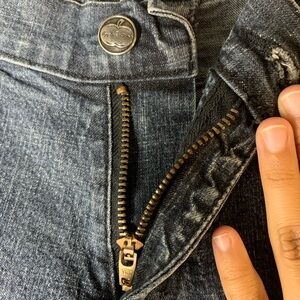 • medium wash denim with slight fading