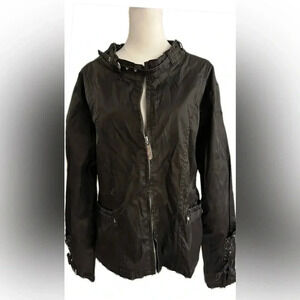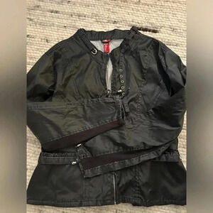 Original, rare Apple Bottoms jacket with Y2K details including buckle collar and lace up sleeves. Adds an edge while remaining lightweight and flexible thanks to elastic waist and cotton/nylon blend. Great find looking for its next home!