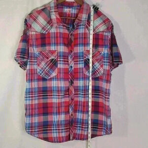 Vintage Y2K Arizona Jean Company Plaid Western Snap Front Short Sleeve Shirt XXL