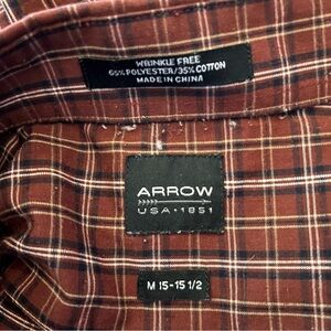 Vintage Y2K Arrow Plaid Button Down Shirt Wrinkle Free Maroon Combo M 15-15.5