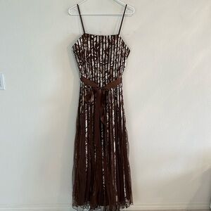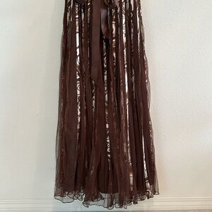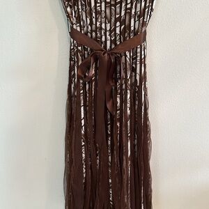 Vintage Y2K Aspeed Brown Mesh Waist Tie Maxi Evening Dress