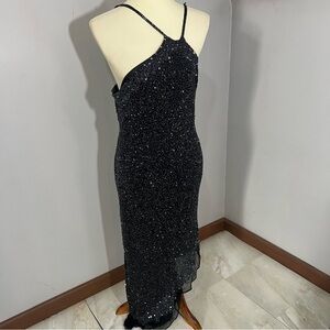 Vintage Y2K Asymmetric Beaded Cocktail Dress Black Formal Long Classic Large LBD