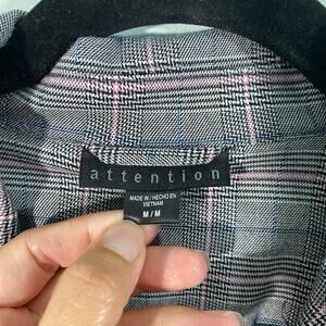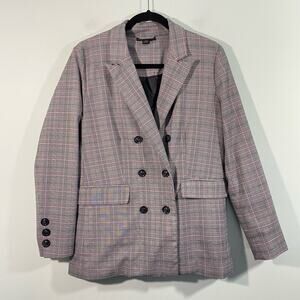 Vintage Y2K Attention Pink & Grey Plaid Hip Length Double Breasted Blazer Size M