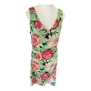 INCREDIBLE Vintage Y2K BCBG Floral Ruched V-Neck Cap sleeve Dress, Size L