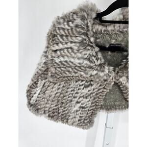 Vintage Y2K BEBE 100% Rabbit Fur Crop Wrap Shawl Sweater Gray