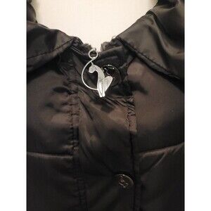 The Vintage Y2K Baby Phat Black Puffer Coat is a stylish and practical choice for winter. This coat features a detachable hood, nylon outer shell, and polyester lining, making it machine washable and easy to care for. With its solid black color and quilted accents, this puffer jacket exudes a 90s vibe perfect for both travel and casual occasions. The large size and regular fit ensure comfort and style for women looking to stay warm and on-trend during the colder months. Coat has flat belt loops on the side (easily removed) but no belt.