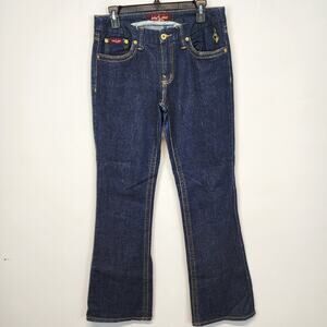 Vintage Y2K Baby Phat Flare Jeans Size 11 30x34 Dark Wash Big Cat Logo 2000s