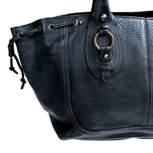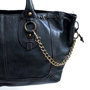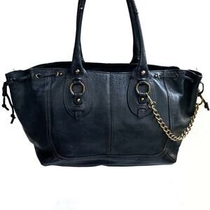 Vintage Y2K Banana Republic Black Leather Tote with Chain Detail | Fall Work Bag
