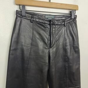 Vintage Y2K Banana Republic Leather Pants Womens 0 Black Bootcut Flare Midrise