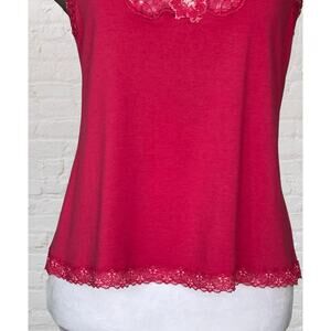 Vintage Y2K Banana Republic Magenta Pink Lace Trim Cami Tank Top Sz L M Fairy